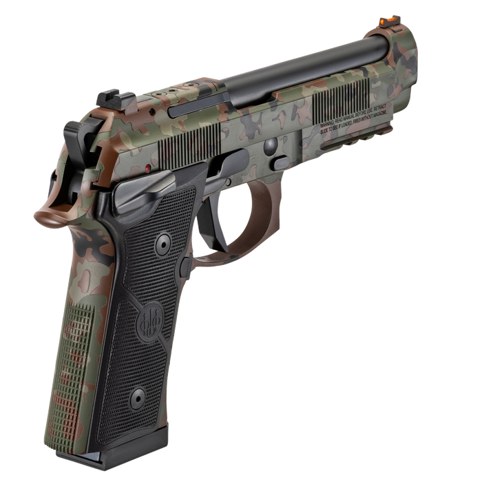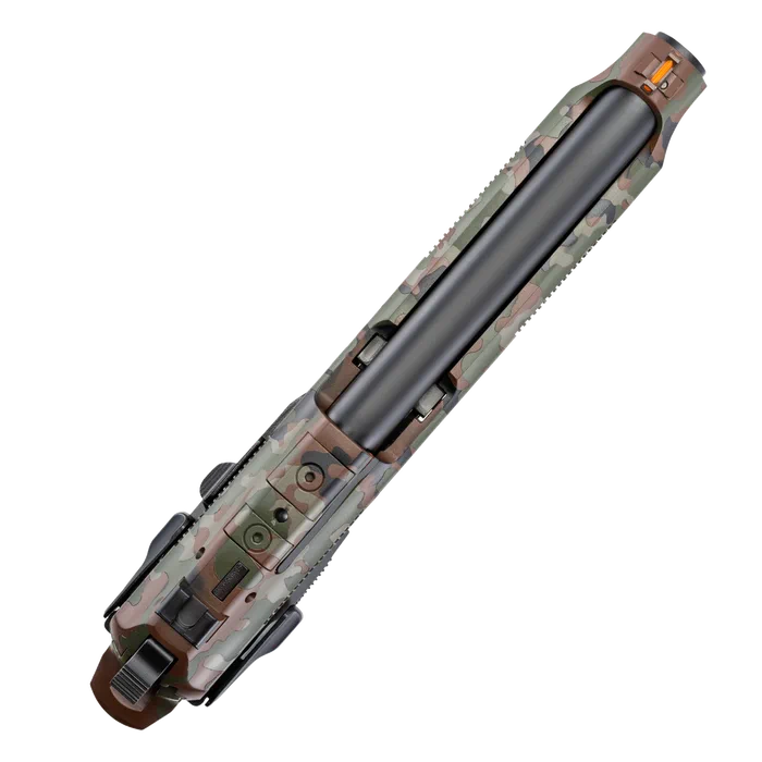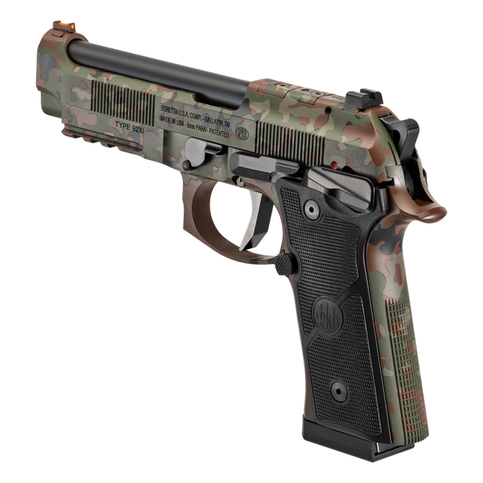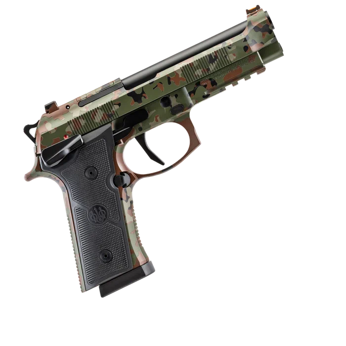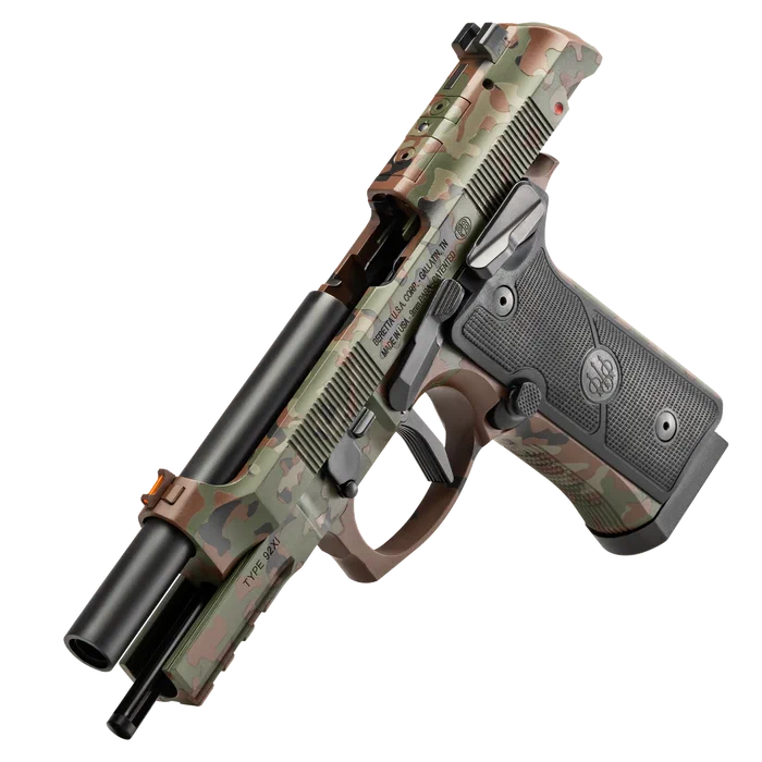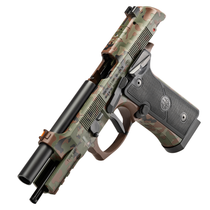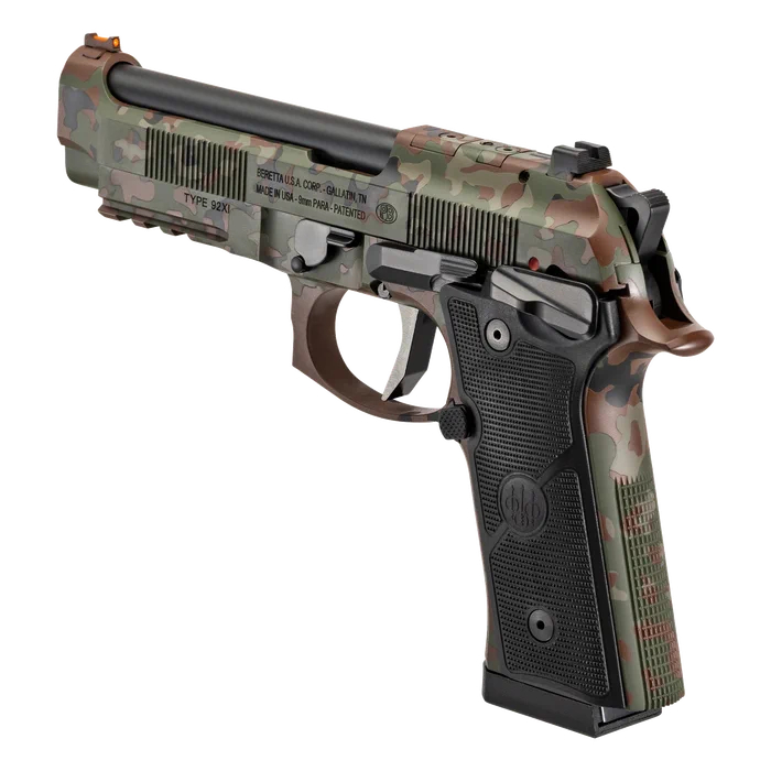 Introducing the Beretta 92XI Foreign Combat Series, where the rich tapestry of European military history meets cutting-edge firearm innovation. Inspired by the valor and dedication of soldiers across the continent, each pistol in this exclusive collection is meticulously crafted to honor the legacy of European military camouflages. Hand-painted by disabled combat veterans, every stroke of camouflage pays homage to the courage and sacrifice of those who have served. Featuring iconic European combat camouflage patterns of Vegetato (Italy), Desert DPM (UK), Flecktarn (Germany), Frog Skin (France), and Splinter (Sweden). With the Beretta 92XI Foreign Combat Garno pistol in hand, every shot fired carries the weight of history and the pride of European military heritage. From the trenches of World War I to the modern battlegrounds of today, this collection stands as a testament to the resilience and camaraderie of soldiers past and present.