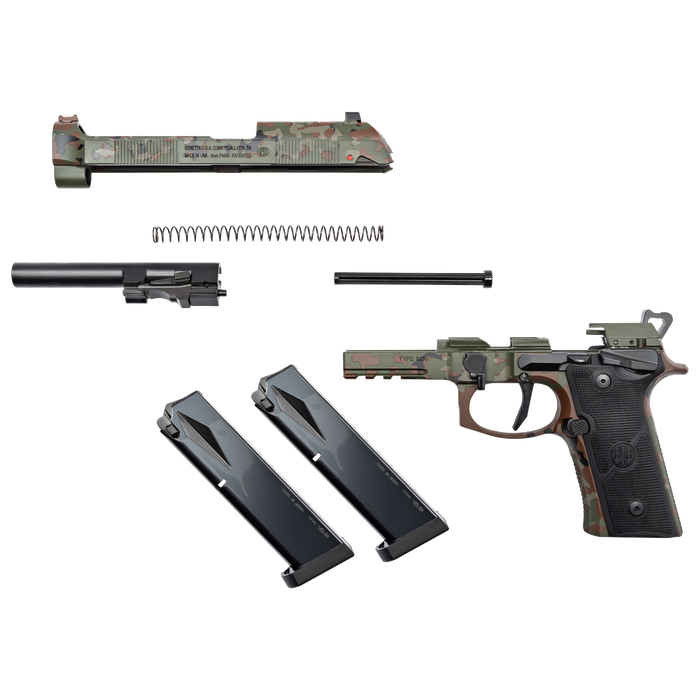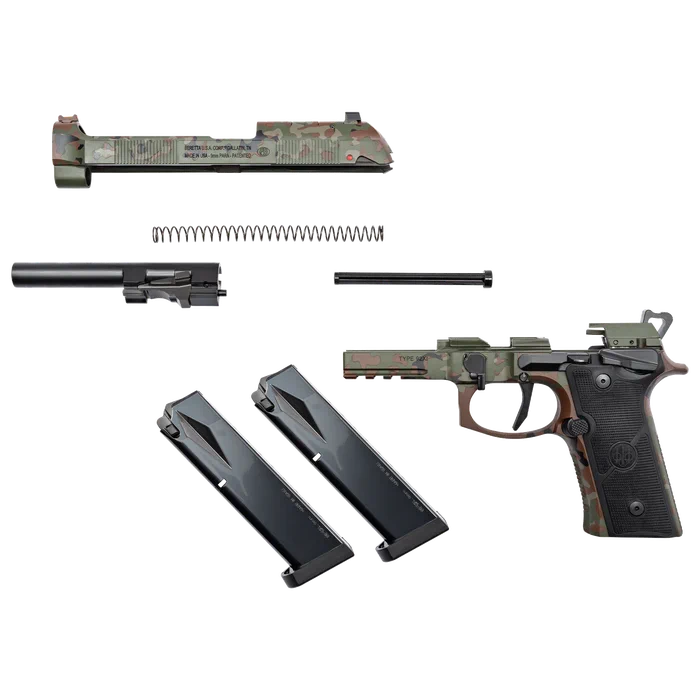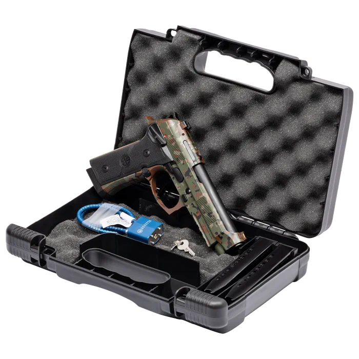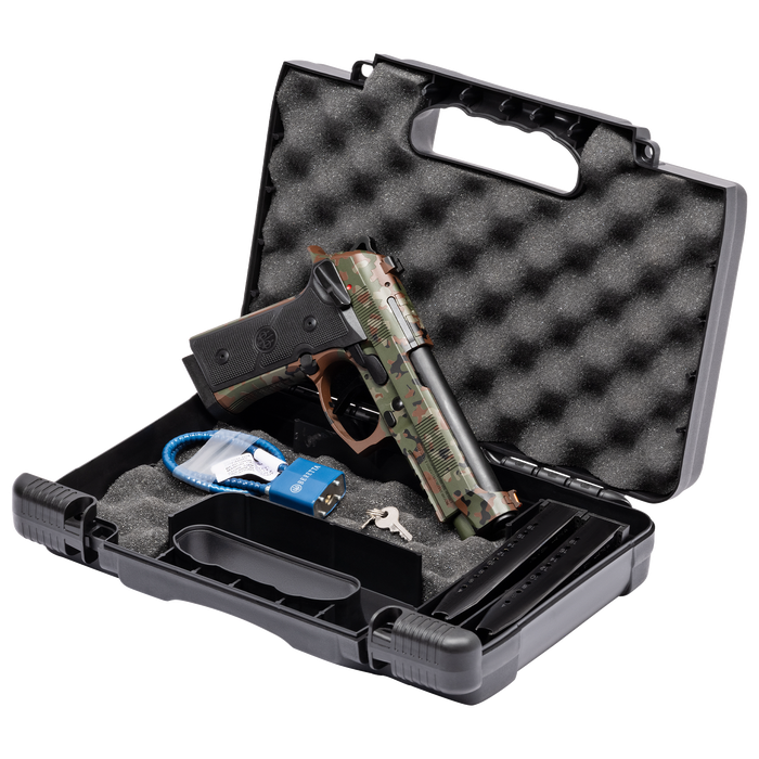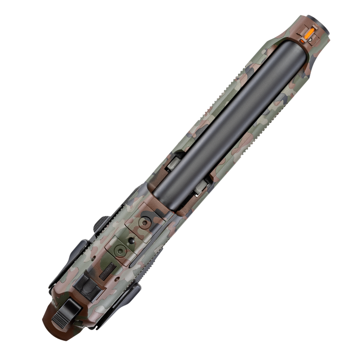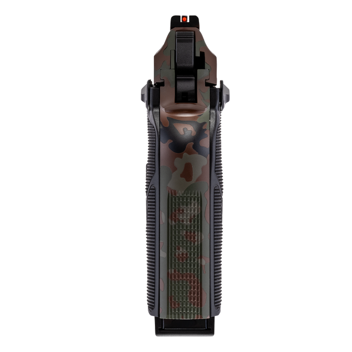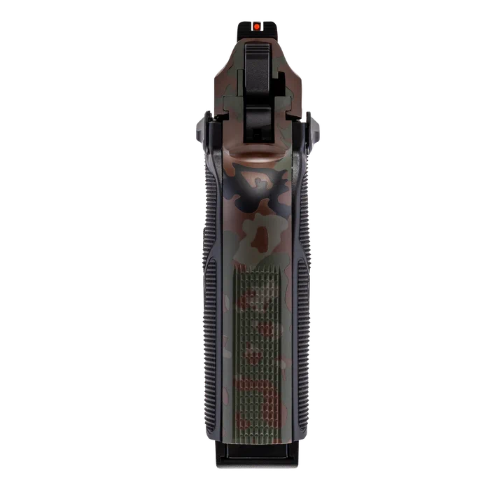 Introducing the Beretta 92XI Foreign Combat Series, where the rich tapestry of European military history meets cutting-edge firearm innovation. Inspired by the valor and dedication of soldiers across the continent, each pistol in this exclusive collection is meticulously crafted to honor the legacy of European military camouflages. Hand-painted by disabled combat veterans, every stroke of camouflage pays homage to the courage and sacrifice of those who have served. Featuring iconic European combat camouflage patterns of Vegetato (Italy), Desert DPM (UK), Flecktarn (Germany), Frog Skin (France), and Splinter (Sweden). With the Beretta 92XI Foreign Combat Garno pistol in hand, every shot fired carries the weight of history and the pride of European military heritage. From the trenches of World War I to the modern battlegrounds of today, this collection stands as a testament to the resilience and camaraderie of soldiers past and present.